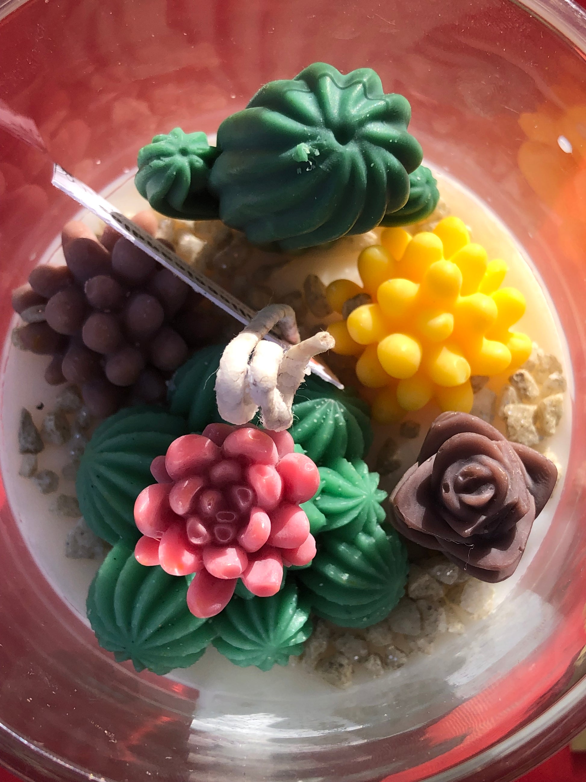 Cactus Garden è una candela artigianale unica, realizzata a mano con cura e attenzione ai dettagli. All’interno di un elegante bicchiere in vetro trasparente prende vita un piccolo giardino di cactus, modellato uno ad uno per creare un effetto realistico e sorprendente.